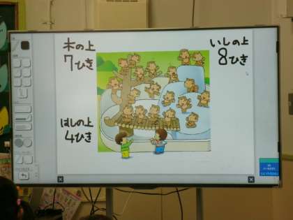 絵を見て、どんな計算になるのか、たし算・引き算の問題を作っていました。