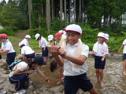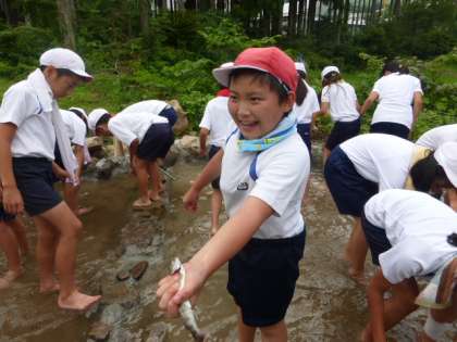 魚つかみは、子どもたちに大人気でした。