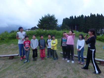 夜はキャンプファイヤーをしました。リハーサルの様子です。