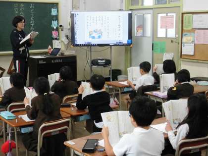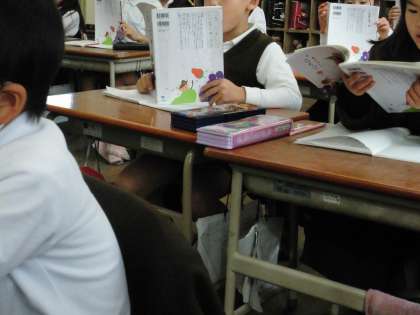 国語で物語文「おとうとねずみチロ」の学習に入りました。まず担任が読んで、こどもたちはどんな話かとらえるためにしっかり聞いていました。
