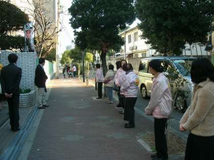 毎月第1・第3月曜日の朝は、港区更生保護女性会の皆さんによる「愛の一声運動」が行われます。今年もどうぞよろしくお願いいたします。