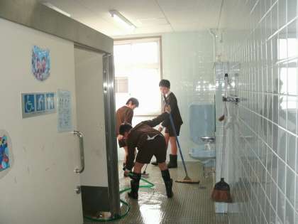 6年生は、廊下、階段、トイレの清掃をしていました。
