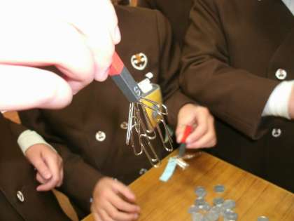 じしゃくはどんなものにくっつくのか、実験していました。