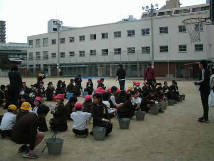 5時間目に1年生と5年生は磯路公園へふれあい清掃活動に出かけました。
