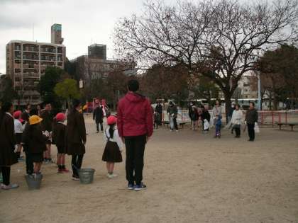 校庭でたてわり班ごとに並び、磯路公園へ。