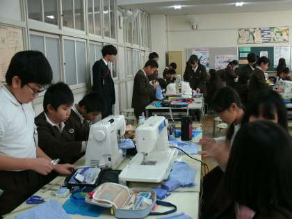 6年生は、家庭科室でお弁当袋を作成中でした。
