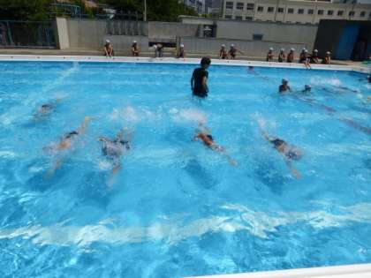 7月31日(木)7月もいよいよおしまいです。暑い日が続きます。低学年のプール開放の様子です。