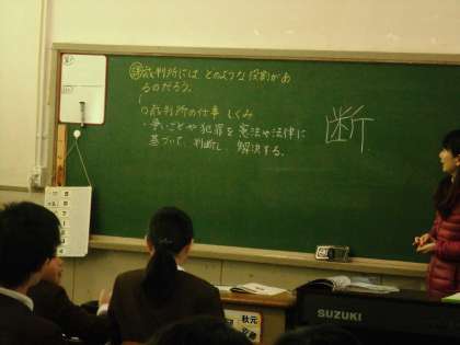 社会で三権分立について学習しています。今日は司法でした。例えば、今社会で問題になっているあおり運転は、悪質な場合どのような法律で裁かれるのか、また量刑のちがいなど少し難しい内容でしたが、わかりやすいたとえを出して話し合いました。