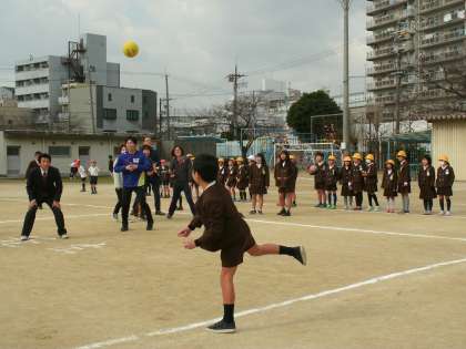 たくさんの応援の中、子どもたちも教職員もドッジボールを楽しみました。
