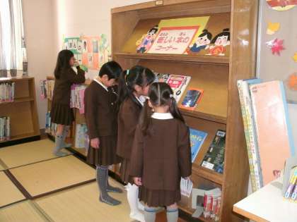 1年2組は、図書室で読書をしていました。