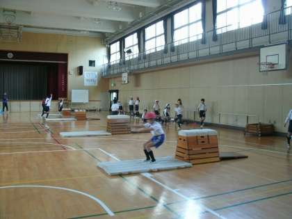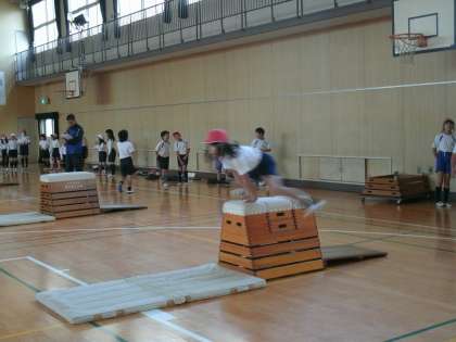 3年生は、体育館で跳び箱をしていました。