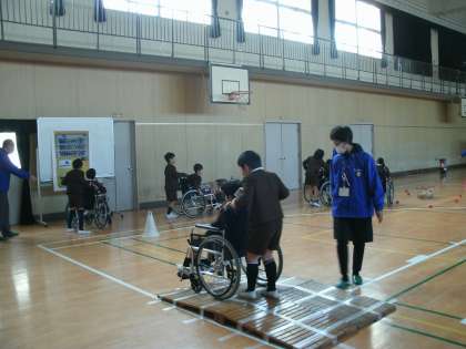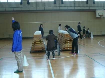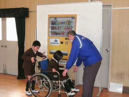 段差や狭い通路、自動販売機や落し物など、子どもたちはしっかりと考えながら車いすを押していました。