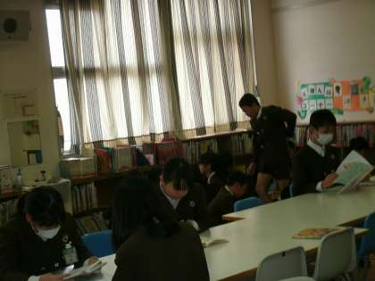 6年生は、図書室で読書をしていました。