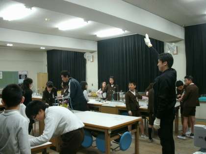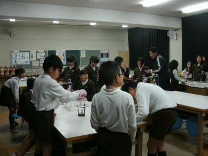 5年2組は、理科室で実験をしていました。