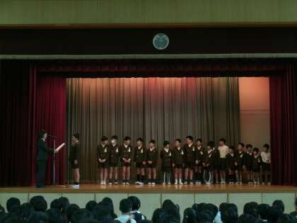 昨日行われた「サンフレンド球技大会」のソフトボールの部において、第3位の成績をおさめました。講堂で表彰式をしている様子です。