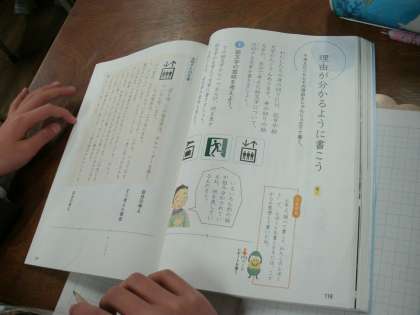 教科書の文章を読んで、わかりやすい部分に線を引いていました。