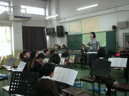 5年1組は、音楽室で合奏の練習をしていました。