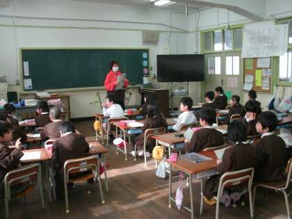 1年2組は、かけあし大会の説明を担任の先生から聞いていました。