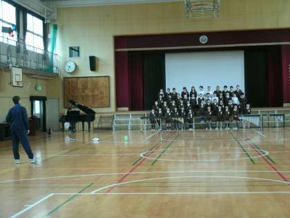 3年生は、体育館で明日の授業参観の練習をしていました。