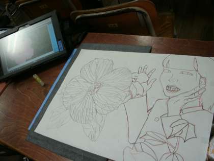 6年生は、教室と学年室に分かれて木版画の制作中でした。
