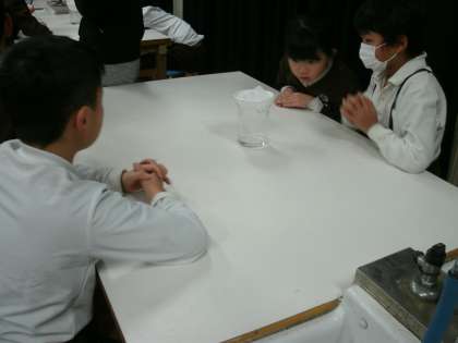 これまでの学習を応用して、「雲をつくる」実験にチャレンジしていました。