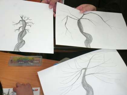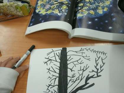 国語で学習した「モチモチの木」を自分なりに描いていました。