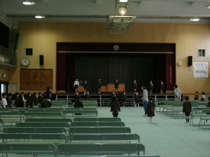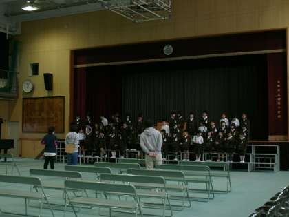 1年生は、講堂で入学式のお祝いの言葉の練習をしていました。