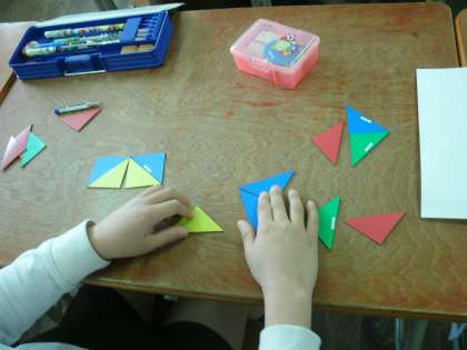 色板をつかって「かたちづくり」をしていました。