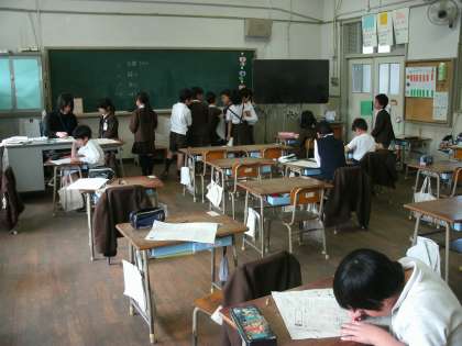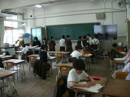 2年1組は、分数のテストをした後、まちがい直しをしたり、計算ドリルを進めたりしていました。