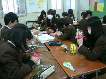 同じ3種類の花を使っていますが、それぞれの個性が表現されたすてきな作品に仕上がりました。