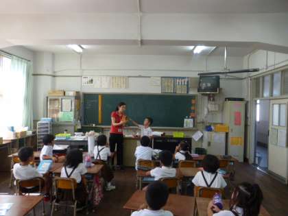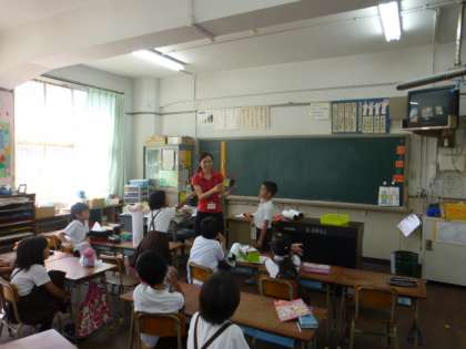 2年生の教室では、夏休みに作った作品の紹介をしていました。