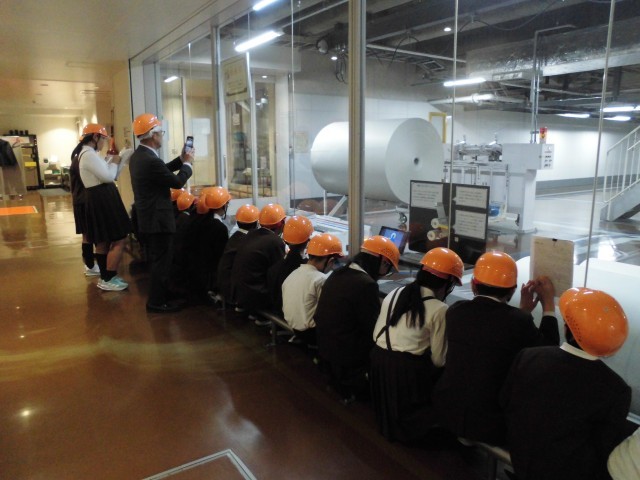 実際に新聞を印刷している輪転機や荷造り、発送などの現場を見学しました。