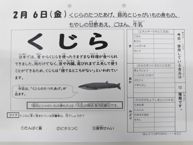 今日の「くじらのたつたあげ」は年に1回しか登場しない献立です。
