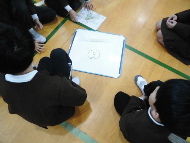 たてわり班で相談しながら、クイズを楽しんでいました。
