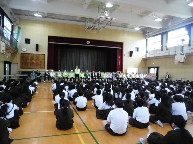 見守り隊の方々とごあいさつ(児童朝会)
