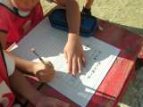 3年生は、運動場で体育の学習をしていました。 ポートボールの練習をしていました。...