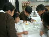 4年2組は、理科室で昨日予想をしたことを実験で確かめていました。