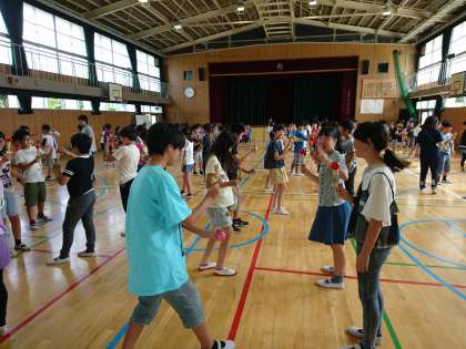 創立90周年記念イベントとして、日本けん玉協会の人にけん玉パフォーマンスを見せてもらい、けん玉の指導をしてもらいました。