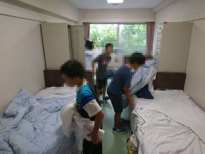 シーツのセッティングに四苦八苦です。