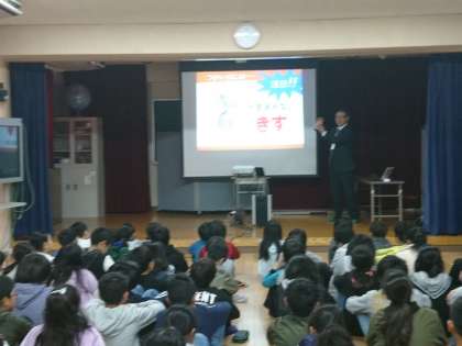KDDIの人に来てもらい、5年生に向けて、スマホ・ケータイ安全教室を行いました。先日、大阪でsnsに関わる事件がありました。この冬休みにお家でもスマホの安全な使い方についてお子様と話し合ってください。