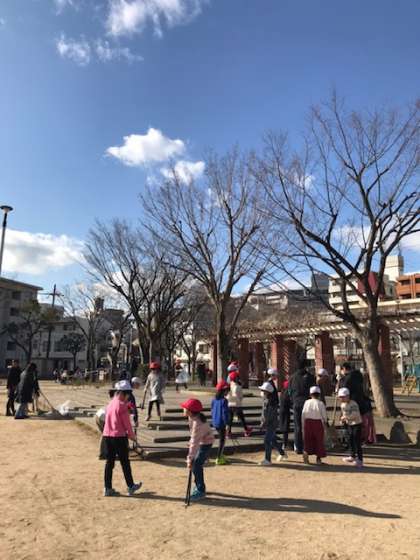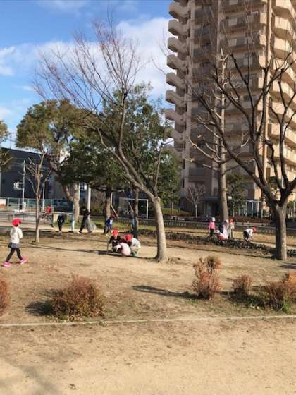 落ち葉や枝、ゴミを拾って公園内を綺麗にしました。