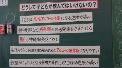 まず、1学期の終わりに実施した「三先小6年生のみなさんはお酒を飲んだことがありますか?」というアンケートの結果を発表しました。その結果、間違えて飲んでしまったという人がたくさんいました。