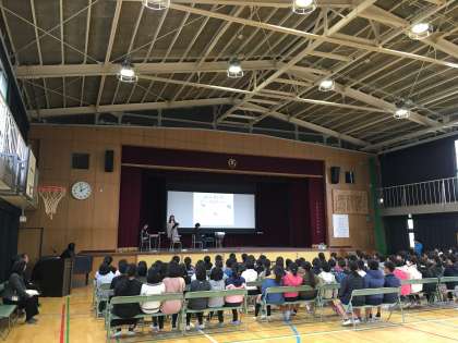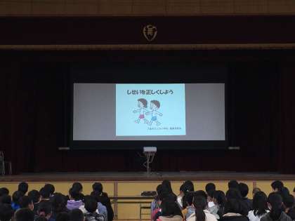 健康委員会、運動委員会、給食委員会がこれまで行ってきた取り組みや、姿勢について調べたことなどを発表しました。