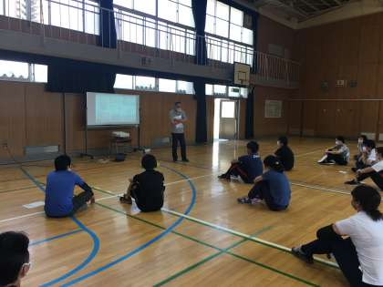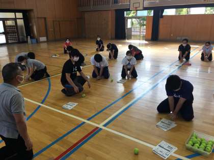 本日、救急救命講習を行いました。プレゼンテーション資料や動画を活用して、心肺蘇生法の手順を確認しました。その後、テニスボールを使って、胸骨圧迫の練習も行いました。