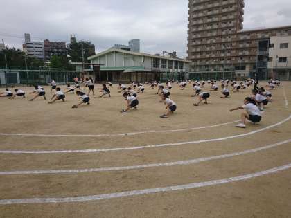 低学年・中学年・高学年に分け、45分間ずつの運動発表会を実施します。