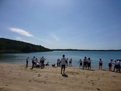 砂浜で遊んでいます。海を渡ってくる風はとても爽やかです。