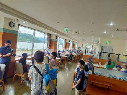 修学旅行最後の昼食です。海の見えるレストランでいただきます。