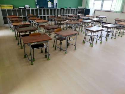 昨年度から順次進めてきた教室の床の改修工事が夏休みに行われ、今回で全教室がきれいになりました。今回行った教室は、1年1組、1年2組、3年2組、4年1組です。きれいになった床で、きっと気持ち良い始業の日を迎えたことでしょう。