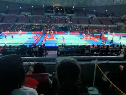 5・6年生が、バトミントンの世界的な大会「ダイハツ・ヨネックスジャパンオープン2022」を観覧する機会を得て丸善インテックアリーナに行きました。