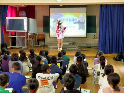 6年生が、港区役所と連携した港区産業推進協議会とともに「港キッズ大発明会議」に参加しました。子どもたちの港区を盛り上げる様々な案の中から選ばれた内容に関連して、港区に本社のある(株)ハコスタ等の方々がゲストティーチャーとして来校されました。コスプレについて児童に授業をしていただいた後、実際に会社訪問もさせていただき、モデルさんやカメラマンさんの動きも見ることができました。来週は、さらにアイデアを膨らませ、港区を盛り上げる取組について考えていきます。